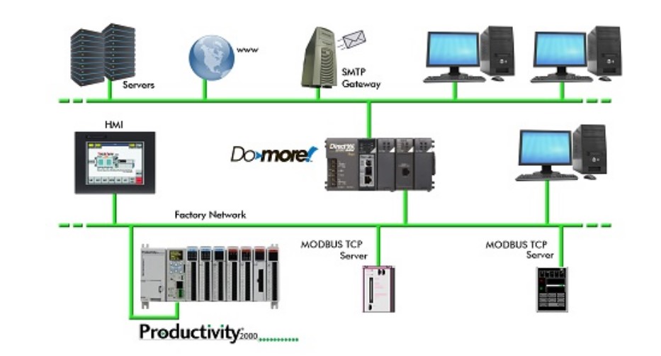 - Kết nối với nhiều loại plc cùng hãng hoặc khác hãng để trao đổi dữ liệu cùng điều khiển một máy móc dây chuyền phức tạp hoặc hệ thống lớn.